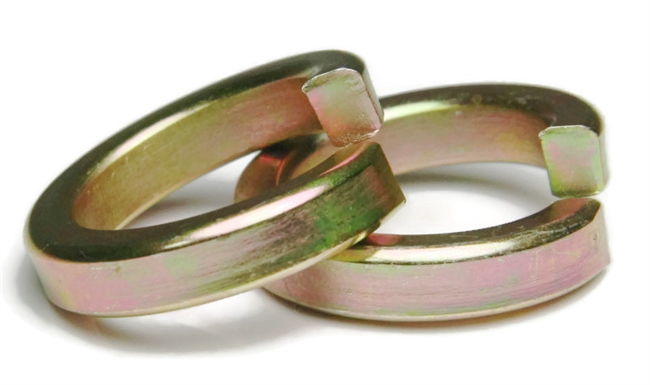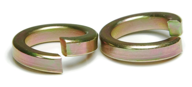Lock Washers, High Collar Split Ring, Grade 8 Yellow Zinc, 3/8"
