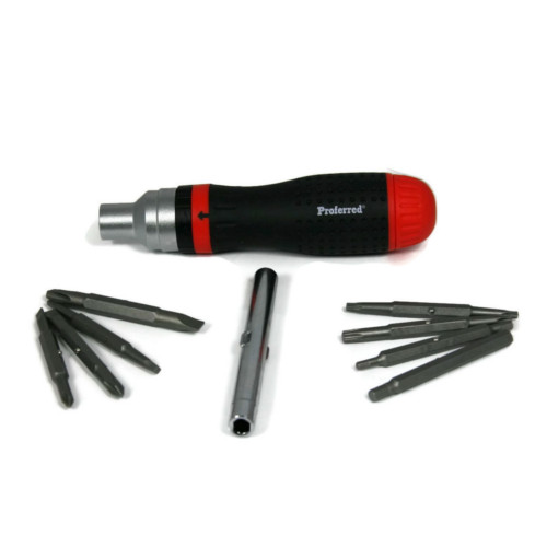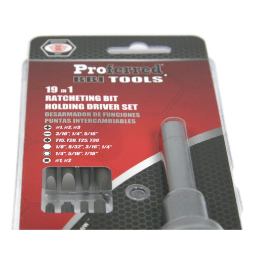 This 19 in 1 Ratcheting Multi-bit screwdriver set is designed to be suitable for multiple hand grips to disperse pressure evenly and reduce ache when applying force. This driver allows the user to apply more than 390 lbs per inch of torque. The ratcheting handle permits high-speed action with grip adjustments and can be combined with several popular drive styles included in this set. It also comes with a Manufacturer's Lifetime Warranty!