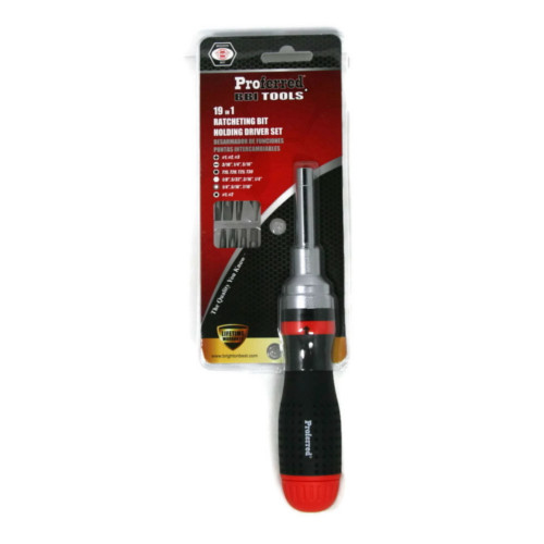 This 19 in 1 Ratcheting Multi-bit screwdriver set is designed to be suitable for multiple hand grips to disperse pressure evenly and reduce ache when applying force. This driver allows the user to apply more than 390 lbs per inch of torque. The ratcheting handle permits high-speed action with grip adjustments and can be combined with several popular drive styles included in this set. It also comes with a Manufacturer's Lifetime Warranty!