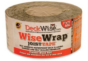 Wisewrap Deck Joist Tape creates a waterproof seal to protect wooden components from moisture which causes wood rot and can significantly shorten the life of your deck. Joist Tape is commonly applied to the top of decking joists, over ledger boards, and around support posts. This tape creates a waterproof seal to hinder rot and decay. Wisewrap Joist Tape by DeckWise is a self-sealing malleable polyethylene waterproof wood flashing material, using a rubberized asphalt mastic adhesive. WiseWrap joist tape has excellent gripping adhesive which can be placed on the support structure of a deck to protect it from moisture. The support structure is typically the entry point for water in a wooden deck, causing it to rot and decay. Wisewrap barrier tape can effectively and easily help maximize the life of a new deck or restoration. Each Roll of Joist Tape is 3 inches wide by 75 feet long.