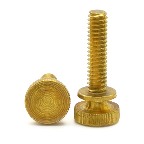 #6-32 Knurled head thumb machine screws are available in corrosion resistant brass.