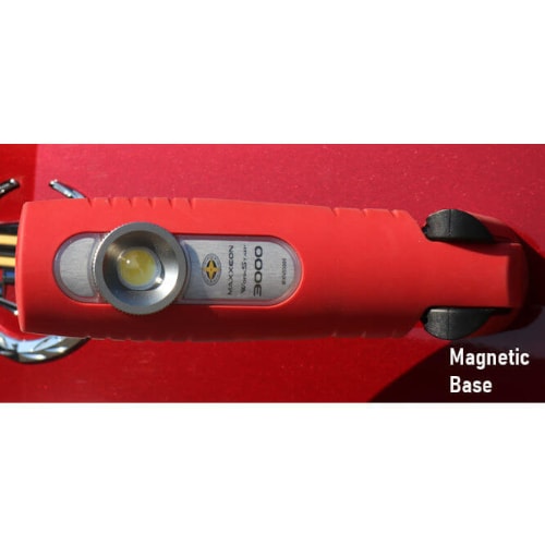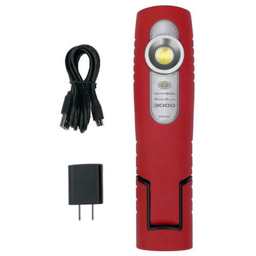 The Maxxeon WorkStar 3000 Technician's Rechargeable Handheld Work Light is the perfect commercial-grade light for people who work with their hands. This work light has a wide beam in the front with 3 brightness settings (700, 350, & 175 lumens) and a narrow beam on the top that produces 150 lumens. Featuring a magnetic base, nylon hook, and a soft rubber coating, this handheld work light can get into almost any position for optimal lighting.