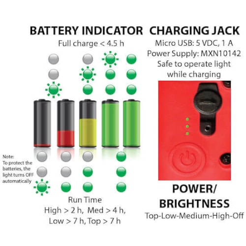 - Medium: 350 Lumens, Run Time of 4 Hours