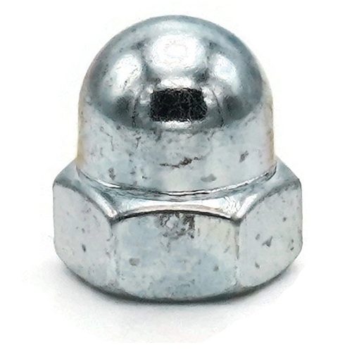 Cap nuts, also known as acorn nuts, feaure an external hex nut style with a domed end to cover exposed threads. They are commonly used in applications where frequent removal is necessary, or just to provide a clean finished look. Cap Nuts in this selection are CR+3 Case Hardened Zinc Plates Steel and meet DIN 1587 sizing specifications.