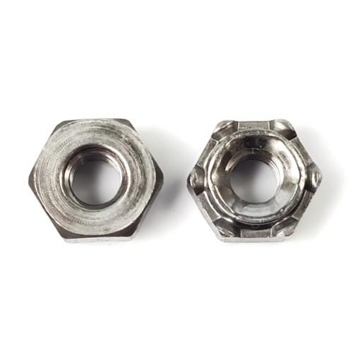 The 6 projections on weld nuts melt into the host material during welding for a quick and enduring hold while the long pilot helps to ensure a precise installation without slipping off the center and protecting the threads from welding spatter during welding operations.