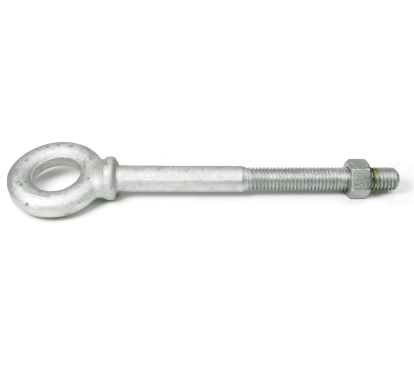 1-1/4"-7 Hot Dip Galvanized Shoulder Pattern Eye Bolts with Nut have a threaded shank with a ring for a head. This ring is used to hold a hanging fitting or a load, commonly seen in industrial rigging applications. In a shoulder pattern Eye Bolt, there is a shoulder between the shank and the eye. Shoulder pattern variety features a shoulder between the ring and the shank.