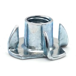 T-nuts—also called tee nuts or blind nuts—are threaded inserts with a thin flange and prongs that bite into wood, particle board, plastic, or composite from the blind side. Once seated, they provide a strong, reusable machine-thread in soft materials while sitting flush with the surface.