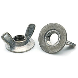 Standard parts are made from zamak zinc alloy with a zinc finish for clean appearance and light indoor corrosion resistance. Use in dry, non-marine environments. For higher corrosion resistance, consider stainless wing nuts offered on our Standard Wing Nuts page.