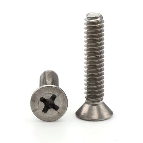 #4-40 Stainless steel Phillips flat head machine screws are available in 18-8 stainless steel.