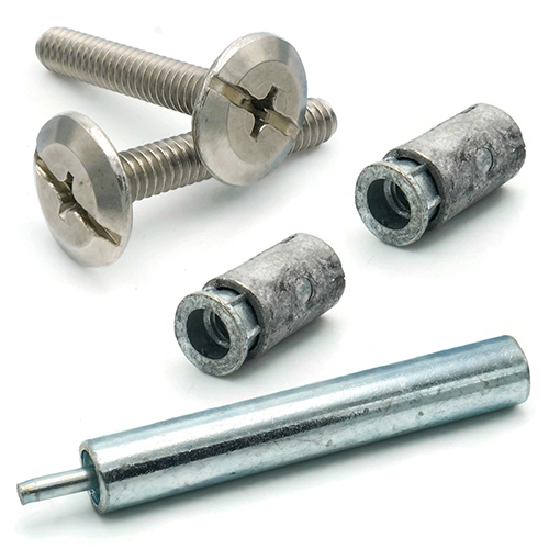 Machine screw anchors feature a zinc coned portion at the end of a lead sleeve that is pulled up, expanding the sleeve, as a screw or bolt is tightened into the internal threads of the anchor. The sleeve is malleable, which fills imperfections in the hole as it expands and distributes the load evenly across the anchor. The anchor remains in the material after installation which means that fixtures can be removed or replaced without sacrificing holding power. Machine screw anchors are safe for use in brick, concrete or stone. The term machine screw is a commonly used to describe screws of smaller sizes.