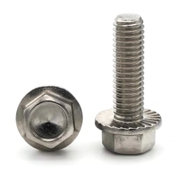 - Flange bolts: hex head with an integrated flange that distributes load like a built-in washer.