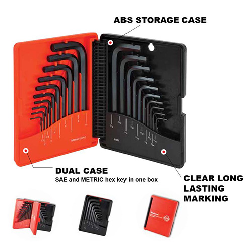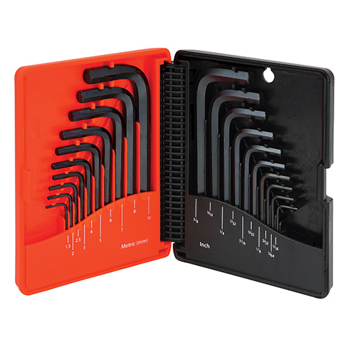 The 20 piece (10 SAE and 10 Metric) Short Arm Hex Key Set is a compact set that allows for both functional storage and easy identification of Allen keys.