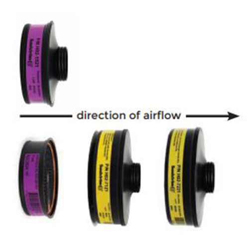 The SR 533 CL/HC/SD/FM/AM/MA chemical cartridge protects against acidic gases and vapors including chlorine, hydrogen chloride, sulfur dioxide, and formaldehyde. Additionally, it also protects against ammonia, methylamine and certain amines.