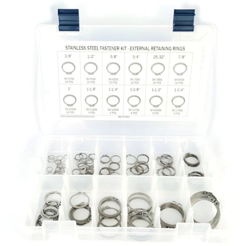 126 Piece Stainless Steel External Snap Ring Kit Easy Reorder Sheet