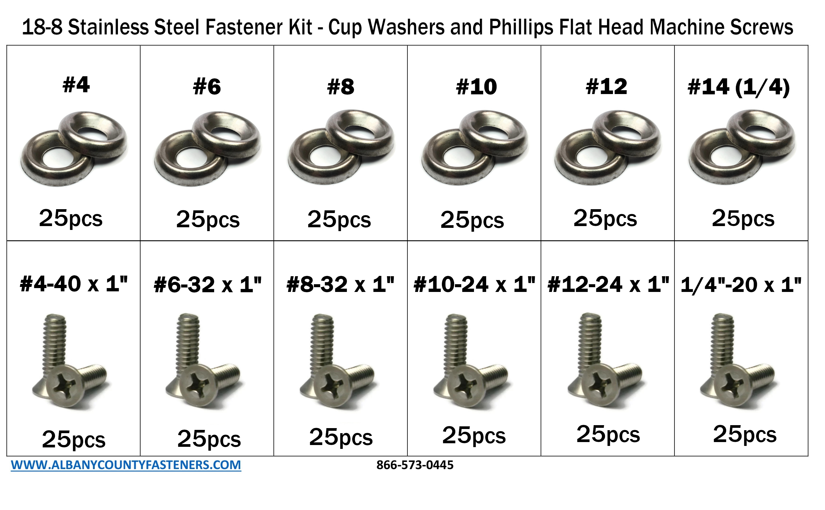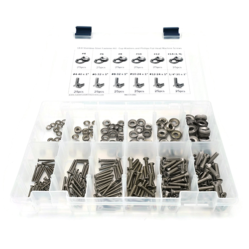 301 piece Stainless Steel Phillips Flat Head Machine Screw Kit with Cup Washers Easy Reorder Sheet
