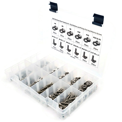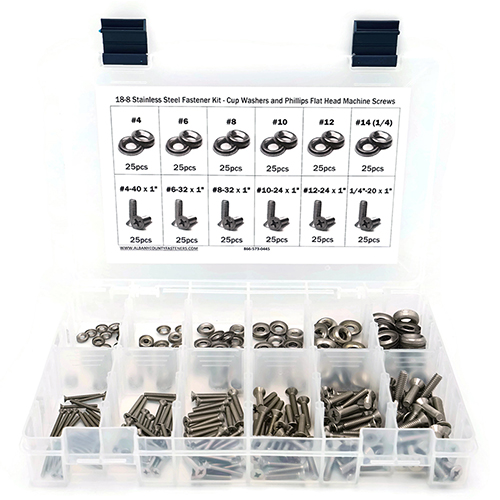 Kit Assortment, Machine Screws with Cup Washers, Phillips Flat Head, Stainless Steel, 301 Pieces