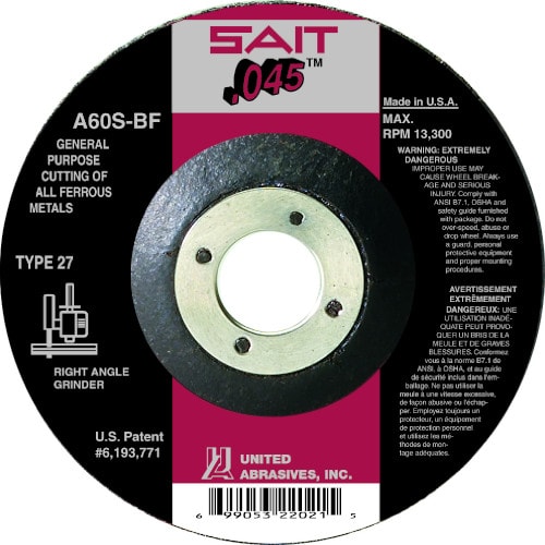 SAIT, Cutting Wheels, Type 27, A60S-BF, 4-1/2" x .045" x 7/8"