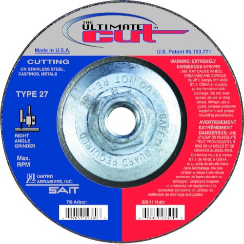 SAIT, Cutting Wheels, The Ultimate Cut, Type 27, 4-1/2" x .045" x 7/8", Depressed Center