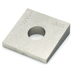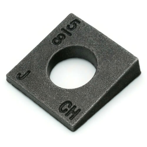 Beveled square washers are used under nuts and bolt heads on sloped or tapered flanges, such as I beam flanges, so the bearing surface sits level. The bevel compensates for the angle, improving seating and preload.
